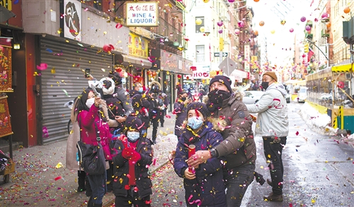 唐人街年味儿 作 者 廖 攀 ▼当地时间2月14日,农历正月初三,美国纽约唐人街市民在放彩花筒,感受中国新春氛围。 |