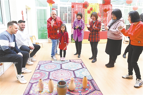 北京过年 暖在身边 (组图之一) 作 者 阎 彤 ▲2月10日,来自美国和英国等国家的二十一世纪实验幼儿园外籍教师,在“留京过年,暖在身边”活动上做游戏,感受中国年。 |
