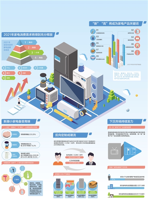 随着扩内需、促消费政策持续发力,消费市场稳定恢复的基础更加牢固。特别是在家电行业,生产厂商和销售平台各显神通,新功能、新品类、新优惠层出不穷,智能家电、反向定制成为新潮流,不断满足消费者各类需求。预计,2021年家电消费总体上将会呈现稳健增长态势。
