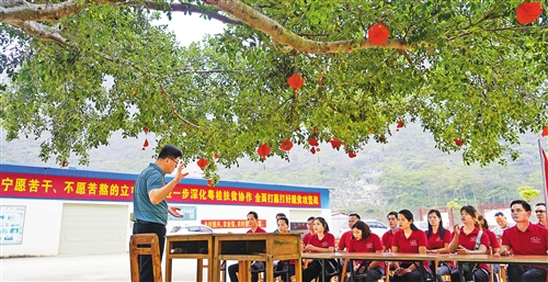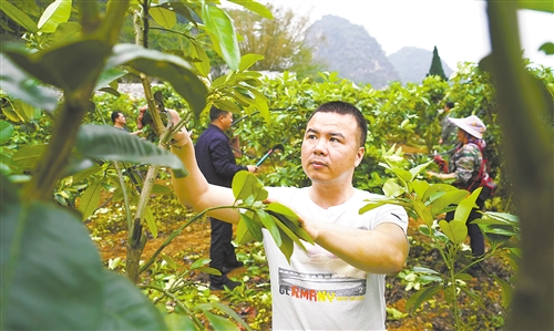 作为立屯精神发源地,道念村不断用“立屯精神”激励全村干部群众在扶贫脱贫路上砥砺前行,他们因地制宜、因时制宜,在产业发展、旅游开发、特色农产品种植等方面不断寻找新路,从根本上提升经济发展原动力。当地通过推行“龙头企业+党组织+合作社+贫困户”运行模式,培育天牛养殖专业合作社、天等县天梦水果产业示范区等种养专业合作社,通过土地流转、入股分红等模式共辐射带动25%以上贫困户发展特色产业。同时,道念村以“立屯精神”文化名片为载体,大力发展红色旅游产业,投资1.7亿元建设文旅项目“天梦景区”,深入挖掘立屯独特的红色资源,不断拓宽群众增收渠道。