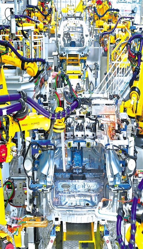 4月15日,位于山东日照经济技术开发区的长城汽车日照生产基地内,自动化生产机器人正组装汽车零部件。目前,日照共有整车生产企业9家,正全力打造汽车整车及零部件产业基地。朱元理摄(中经视觉)