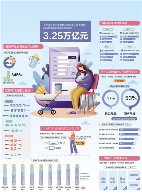 舍得花钱、精细养育、追求潮流……新一代宝妈宝爸的育儿理念不断更新,母婴消费需求持续升级,这些因素助力我国母婴市场规模快速增长。什么样的母婴产品更受欢迎?哪些人是母婴消费主要力量?母婴市场又将如何发展?让我们一起看看大数据怎么“说”。