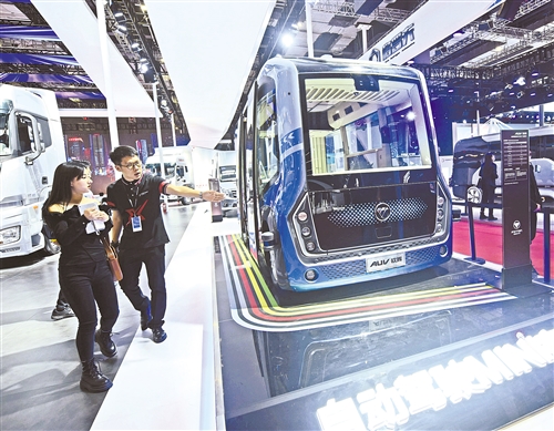 近日,一款国产5G无人驾驶MINI客车在上海车展发布。该无人驾驶小巴应用深度神经网络学习、自动无线充电等前沿科技,并将在2022年北京冬奥会投入使用,吸引不少观众目光。龙 巍摄(中经视觉)