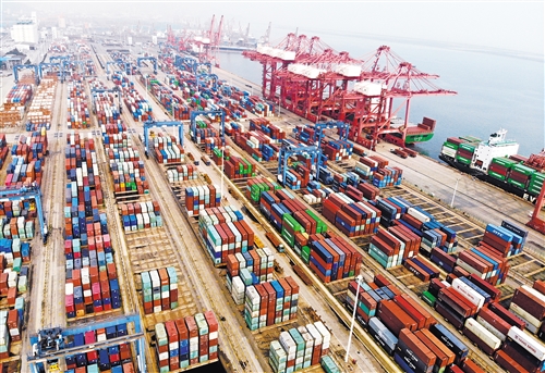 6月30日,江苏连云港港口码头一派繁忙。当日,国家统计局服务业调查中心、中国物流与采购联合会发布数据显示,6月份中国制造业采购经理指数为50.9%,继续位于临界点以上,制造业延续稳定扩张态势。
