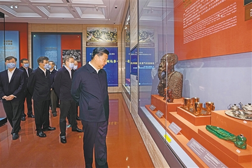 新华社北京7月16日电 7月16日,中共中央总书记、国家主席、中央军委主席习近平前往中央礼品文物管理中心,参观“友好往来 命运与共——党和国家领导人外交活动礼品展”。他强调,党和国家领导人外交活动礼品具有特殊的历史价值和丰富的人文内涵,凝聚着中国人民同世界各国人民的深厚情谊,也见证着新中国外交事业的辉煌成就。中国共产党是为中国人民谋幸福的政党,也是为人类进步事业而奋斗的政党。我们将高举和平、发展、合作、共赢旗帜,同世界各国人民深化友谊、加强交流,推动建设新型国际关系,推动构建人类命运共同体,推动共建“一带一路”高质量发展,以中国的新发展为世界提供新机遇。要通过展览,激励全党全国各族人民为实现全面建成社会主义现代化强国的第二个百年奋斗目标和中华民族伟大复兴的中国梦而团结奋斗。