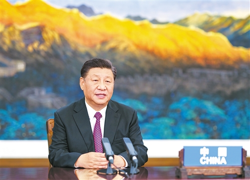 七月十六日晚,国家主席习近平应邀在北京以视频方式出席亚太经合组织领导人非正式会议并发表讲话。新华社记者 李学仁摄