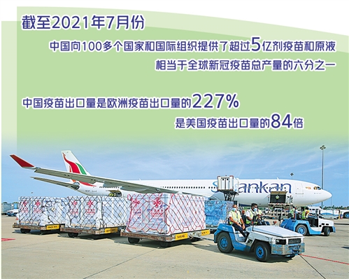 李保东表示,中国在向发展中国家提供疫苗方面贡献最大,对外援助和出口疫苗的数量超出了其他国家的总和,以实际行动落实了自己的承诺和主张。截至2021年7月份,中国已向100多个国家和国际组织提供了超过5亿剂疫苗和原液,相当于全球新冠疫苗总产量的六分之一。中国的疫苗出口量是欧洲疫苗出口量的227%,是美国疫苗出口量的84倍。除了疫苗成品的出口,中国还在帮助其他发展中国家建立疫苗的本地生产线,有的已经投产。中国还积极支持对广大发展中国家豁免新冠疫苗知识产权。