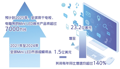 “2021年是Mini LED大规模商用的元年,未来5年是快速发展期,预计到2025年全球用于电视、电脑等的Mini LED背光产品将超过7000万台。”华为终端有限公司终端标准产业副总裁孙瑞囡说。