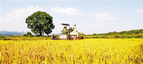 8月12日,江西新余市渝水区界水乡黄溪村村民在收割水稻。今年以来,新余市渝水区认真落实国家惠农政策,出台了一系列促进粮食生产的政策措施,农民种粮积极性大增,全区水稻种植面积达73万亩,喜获丰收。