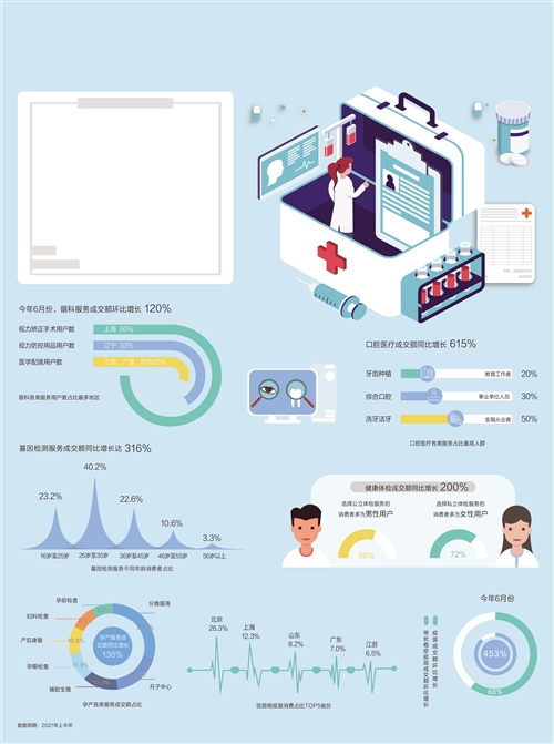 疫苗服务6月成交额环比增长60%、健康体检上半年成交额同比增长200%、基因检测服务成交额同比增长316%……一连串高增长的消费医疗数据,是民众自身疾病预防观念的提升,同时也映射出预防医疗产业发展的光明前景。
