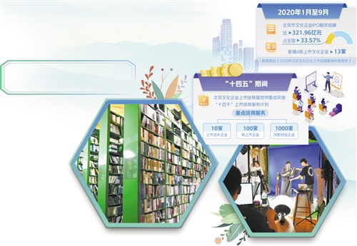 优质文化企业是推动首都文化产业高质量发展的主力军。《2020年北京文化企业上市培育基地年度报告》显示,2019年,北京A股上市文化企业42家,营业收入合计1521.93亿元。2020年1月至9月,北京市文化企业IPO融资规模高达321.96亿元,遥遥领先其他地区。