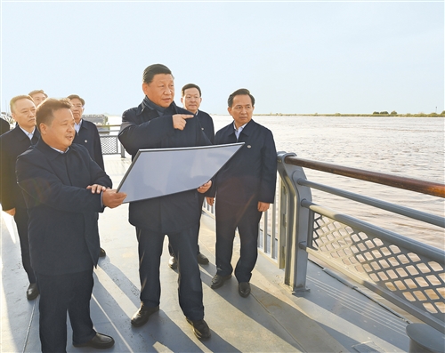 习近平指出,沿黄河省区要落实好黄河流域生态保护和高质量发展战略部署,坚定不移走生态优先、绿色发展的现代化道路。第一,要坚持正确政绩观,准确把握保护和发展关系。把大保护作为关键任务,通过打好环境问题整治、深度节水控水、生态保护修复攻坚战,明显改善流域生态面貌。沿黄河开发建设必须守住生态保护这条红线,必须严守资源特别是水资源开发利用上限,用强有力的约束提高发展质量效益。第二,要统筹发展和安全两件大事,提高风险防范和应对能力。高度重视水安全风险,大力推动全社会节约用水。要高度重视全球气候变化的复杂深刻影响,从安全角度积极应对,全面提高灾害防控水平,守护人民生命安全。第三,要提高战略思维能力,把系统观念贯穿到生态保护和高质量发展全过程。把握好全局和局部关系,增强一盘棋意识,在重大问题上以全局利益为重。要把握好当前和长远的关系,放眼长远认真研究,克服急功近利、急于求成的思想。第四,要坚定走绿色低碳发展道路,推动流域经济发展质量变革、效率变革、动力变革。从供需两端入手,落实好能耗双控措施,严格控制“两高”项目盲目上马,抓紧有序调整能源生产结构,淘汰碳排放量大的落后产能和生产工艺。要着力确保煤炭和电力供应稳定,保障好经济社会运行。