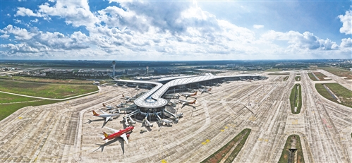 11月20日拍摄的即将投入运营的海口美兰国际机场二期项目(无人机照片)。美兰国际机场二期扩建项目计划于12月2日投入运营。该项目是海南省重点工程项目,是构建海南海陆空立体交通体系,加强与“一带一路”沿线国家互联互通的重要一环,是海南自贸港发展旅游业、空港物流产业的基石。