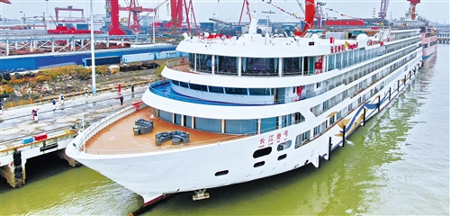 12月16日,“长江叁号”新一代高端邮轮在招商工业江苏省南通市海门基地命名交付。