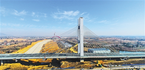 周瑜大道桥是庐江县境内“引江济淮”关键性施工节点项目。目前,该桥梁主体及连接线路面工程已全部完工,正抓紧为通车运营做最后准备。