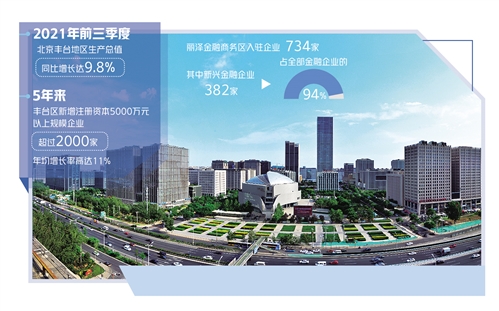 “丰台区近5年的发展离不开重点功能区带动。”丰台区发改委相关负责人说:“三环里新城看丽泽。”作为北京城市总规划赋予的新兴金融产业集聚区、首都金融改革试验区,丽泽金融商务区成为首都金融科技创新示范区主阵地。截至目前,入驻企业734家,其中新兴金融企业382家,占全部金融企业的94%。