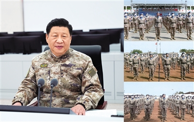 随后,习近平同中部战区海外维和分队进行视频通话。来自维和步兵营、工兵分队、医疗分队、直升机分队的同志们整齐列队,依次向习近平报告。习近平向他们,并向我军正在海外执行任务的全体官兵表示慰问。习近平强调,要忠实履行维和使命,为维护世界和平贡献更多中国力量,向世界展示中国军队良好形象。维和任务区环境复杂,要注意加强安全防范,搞好疫情防控。