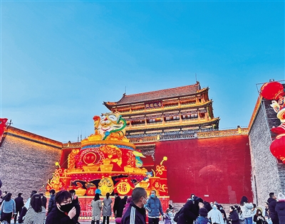 漫步古街,一步一景,造型优美、做工精细的花灯立于城墙脚下,组成了美丽的灯海,营造出浓浓的节日气息。不少游客都不禁放缓了脚步,举起手机,边走边拍,记录着这一幕幕动人的时刻。