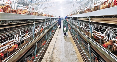 2月28日,山东聊城东昌府区梁水镇八刘新村的养殖户正在现代化养鸡大棚内忙碌。当地通过应用自动化技术,提升了传统养殖业效率,带动村民增收致富,助力乡村全面振兴。