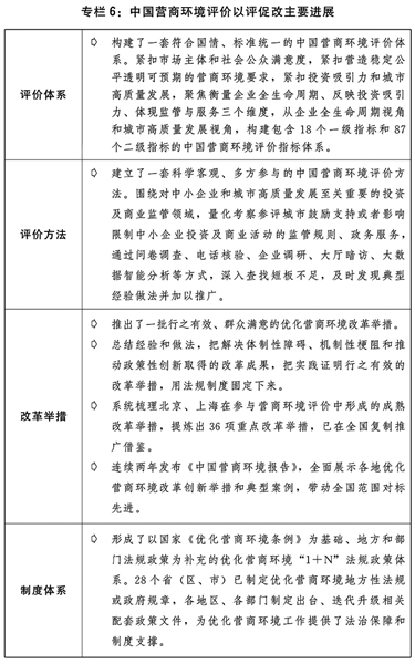 二是各类市场主体活力进一步激发。深入实施国企改革三年行动方案,加快国有经济布局优化和结构调整,国有经济进一步聚焦战略安全、产业引领、国计民生、公共服务等功能。国有企业混合所有制改革积极稳妥推进,近100户试点企业完成主体改革任务。持续为民营企业改革发展营造良好环境,20多部涉产权法律法规立改废,5847件涉产权规章规范性文件被清理。民营企业进入油气进出口、铁路、核电等领域,首条民间资本控股的杭绍台高铁建成通车。总结8个地方72条支持民营企业改革发展的典型做法并向全国推广,充分发挥示范引领作用。充分发挥各级融资信用服务平台作用,加强信用信息共享应用促进中小微企业融资。