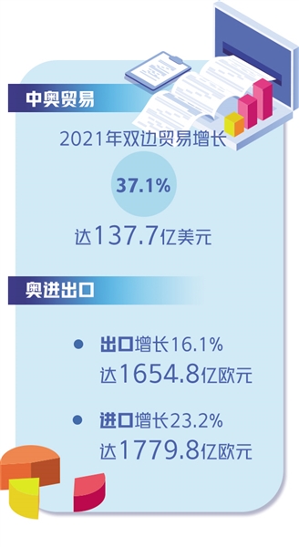 本报维也纳讯(记者翁东辉)中国驻奥地利大使李晓驷在近日举行的在奥中资企业协会年度全体大会上表示,去年中奥关系稳中有进,共同举办庆祝建交50周年系列活动,传统友好得到深化;双边贸易增长37.1%,达137.7亿美元,创历史新高。围绕北京冬奥会及冰雪运动产业合作取得重要成果,成为双方务实合作新亮点。