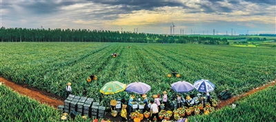 ⑤ 广东省湛江市徐闻县果农采收菠萝。有“中国菠萝之乡”之称的徐闻县种植菠萝35万亩,年均产量约70万吨,已带动近5万农户增收致富。