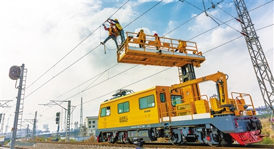 3月28日,浩吉铁路新余西综合维修车间组织人员对铁路供电接触网设备进行检修,确保国家北煤南运战略通道运输畅通。