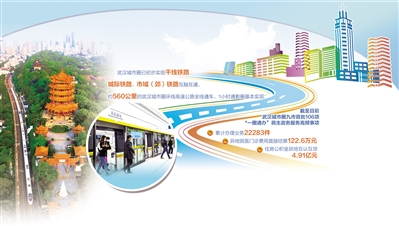 如今,武汉城市圈初步实现干线铁路、城际铁路、市域(郊)铁路的互融互通,约560公里的武汉城市圈环线高速公路全线通车,1小时通勤圈基本实现。“轨道上的城市圈”,让“圈民”在9城间快速穿梭。