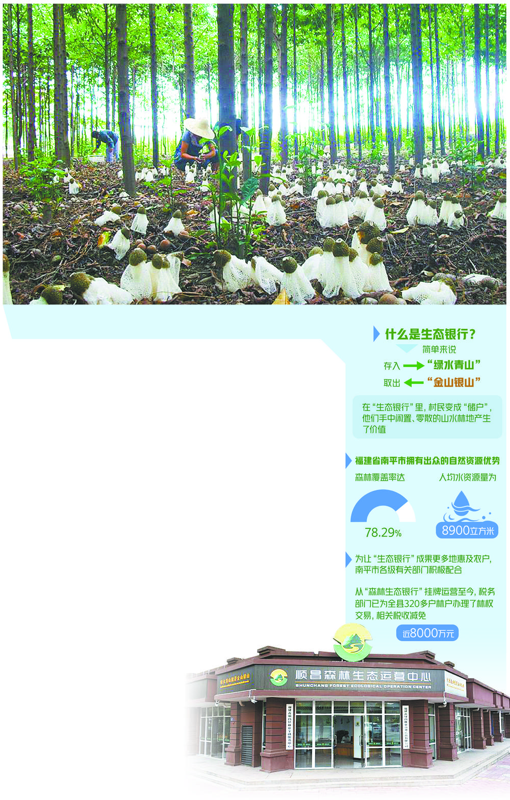 为让“生态银行”成果更多地惠及农户,南平市各级有关部门也积极配合。国家税务总局顺昌县税务局办税服务厅负责人兰木贤表示,从“森林生态银行”挂牌运营至今,税务部门主要通过靠前宣传辅导、开通政策咨询热线、开辟业务办理“绿色通道”等方式为农户提供服务与支持,已为全县320多户林户办理了林权交易,相关税收减免近8000万元。