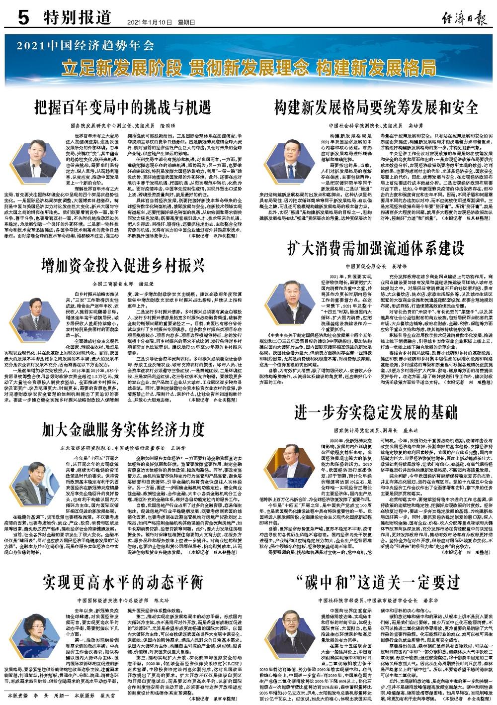 综合判断,今年我国经济将继续保持稳定复苏的态势,并且向常态化回归,运行在合理区间。党的十九届五中全会和中央经济工作会议作出了全面部署和安排,接下来的任务主要是狠抓贯彻落实。