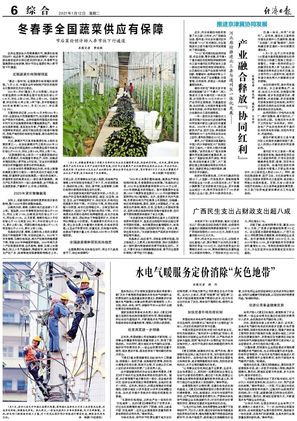 孔繁涛告诉记者,2020年12月末和2021年1月初,全国发生大范围寒潮天气,给后期冬春蔬菜生产带来不利影响。这种低温和雨雪弱光条件极不利于北方设施蔬菜和南方露地蔬菜生产。蔬菜生长速度减缓,甚至发生冷害,产量减少,集中上市期将有所延迟,进而可能出现茬口衔接不畅情况,导致产地收购价格较往年偏高,部分品种价格涨幅偏大。