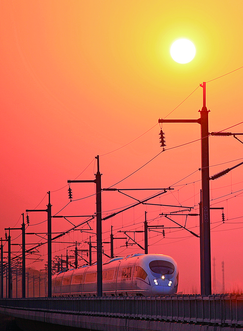1月19日,一列动车组列车行驶在山东省临沂市平邑县。