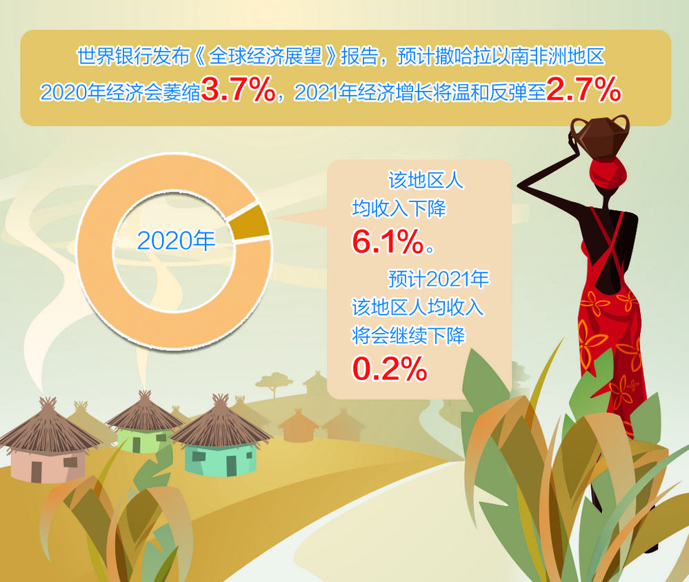 2020年新冠肺炎疫情重创撒哈拉以南非洲地区经济,当前仍在持续的疫情也给2021年该地区经济发展前景带来了挑战。世界银行发布最新《全球经济展望》报告,预计该地区2020年经济会萎缩3.7%,而2021年经济增长将温和反弹至2.7%。