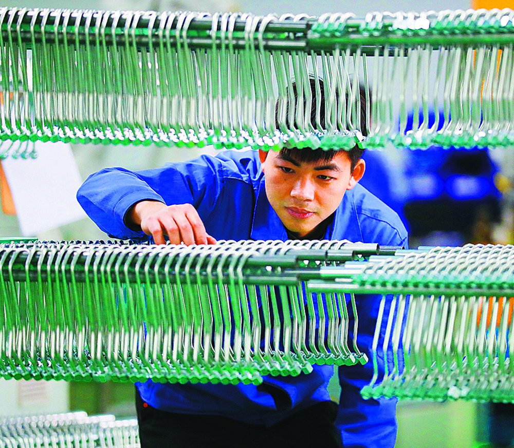 位于浙江省德清县钟管镇南舍工业区的浙江奥加汽车零部件制造有限公司生产车间内,员工正在检查即将出厂的产品质量。近年来,德清县推出多项鼓励政策,积极引导企业加大科技投入和创新研发力度,推动机器人产业发展壮大,促进企业生产和销售提升。据悉,这几年该企业从国内外引进全自动弯管线等多套世界先进生产设备,推进机器换人,提高产品质量。 王 正摄(中经视觉)