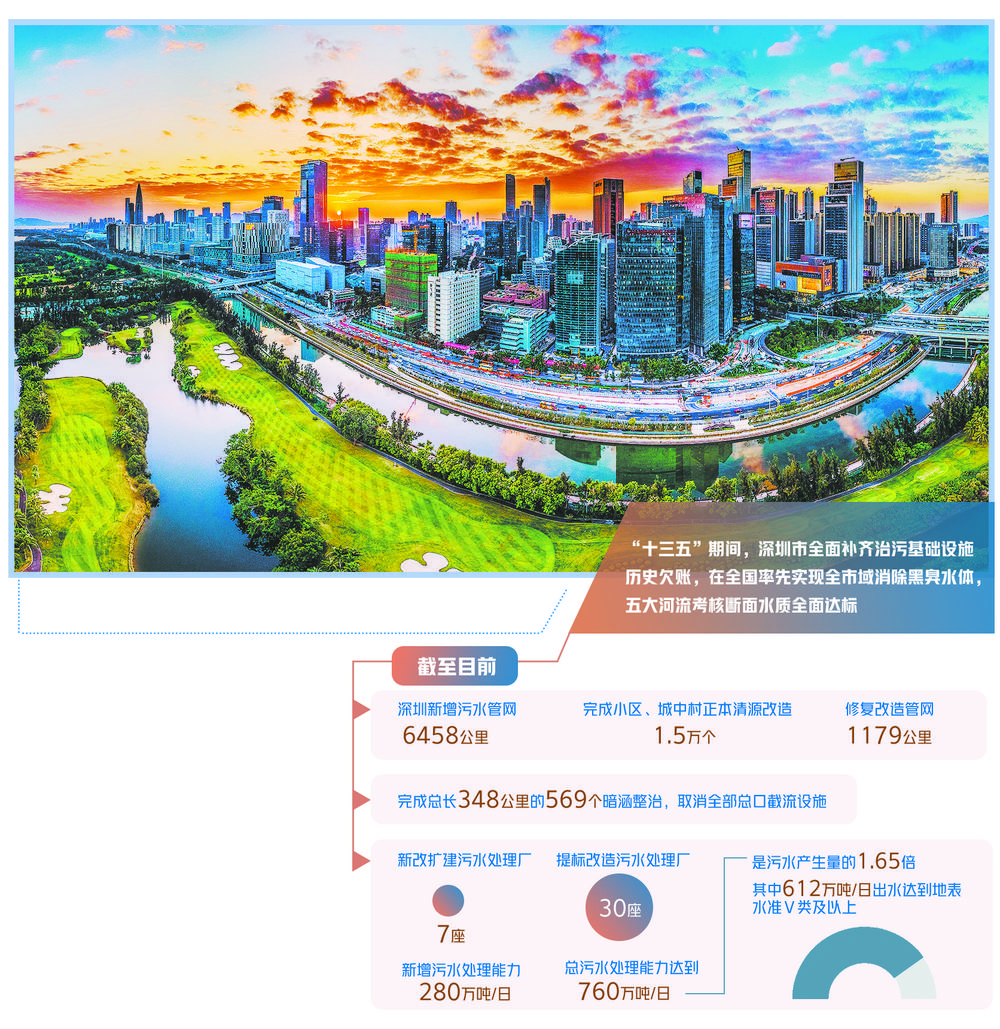 通过努力,“十三五”期间,深圳在全国率先实现全市域消除黑臭水体,五大河流考核断面水质全面达标。