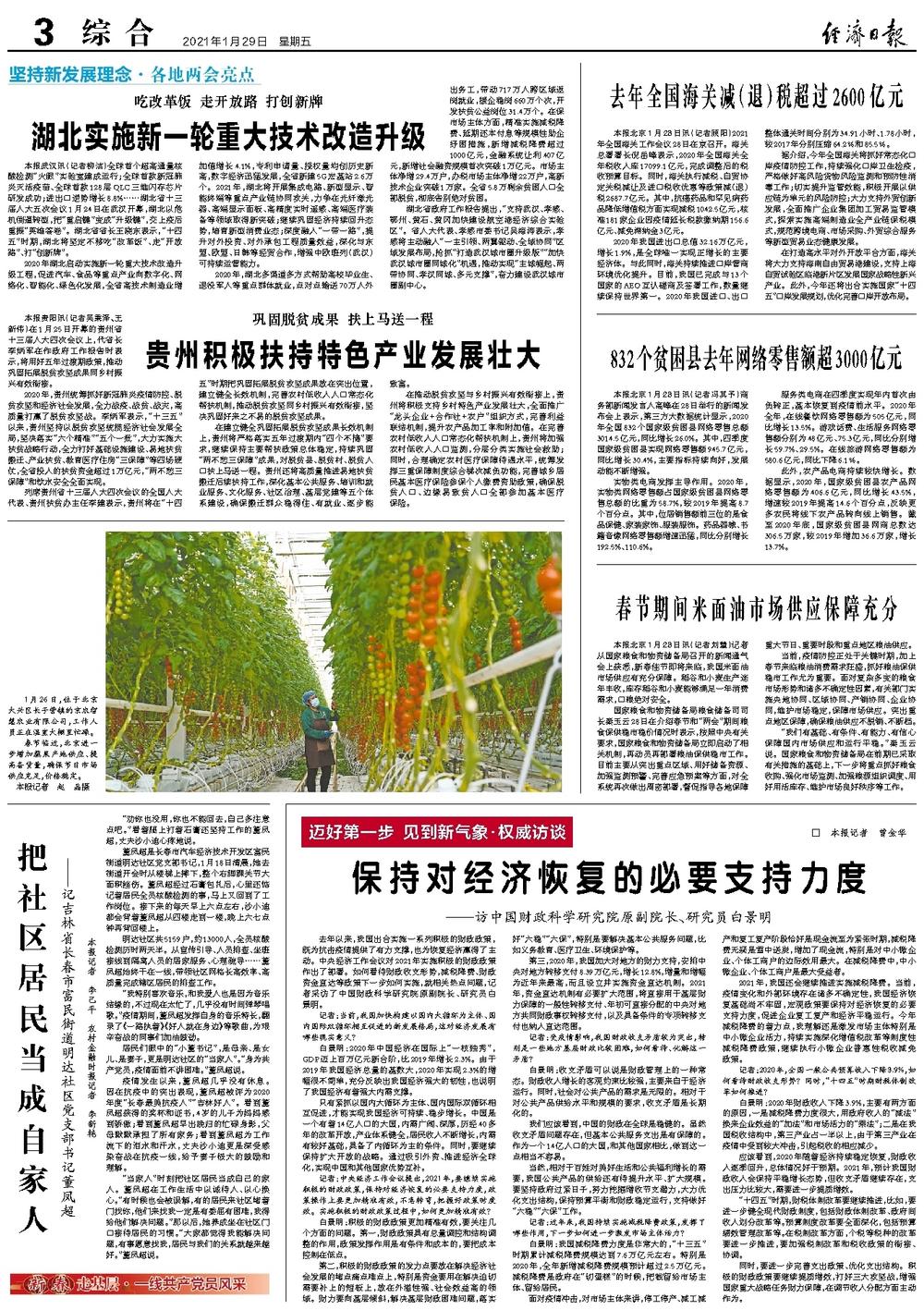 2020年,贵州统筹抓好新冠肺炎疫情防控、脱贫攻坚和经济社会发展,全力战疫、战贫、战灾,高质量打赢了脱贫攻坚战。李炳军表示,“十三五”以来,贵州坚持以脱贫攻坚统揽经济社会发展全局,坚决落实“六个精准”“五个一批”,大力实施大扶贫战略行动,全力打好基础设施建设、易地扶贫搬迁、产业扶贫、教育医疗住房“三保障”等四场硬仗,全省投入的扶贫资金超过1万亿元,“两不愁三保障”和饮水安全全面实现。