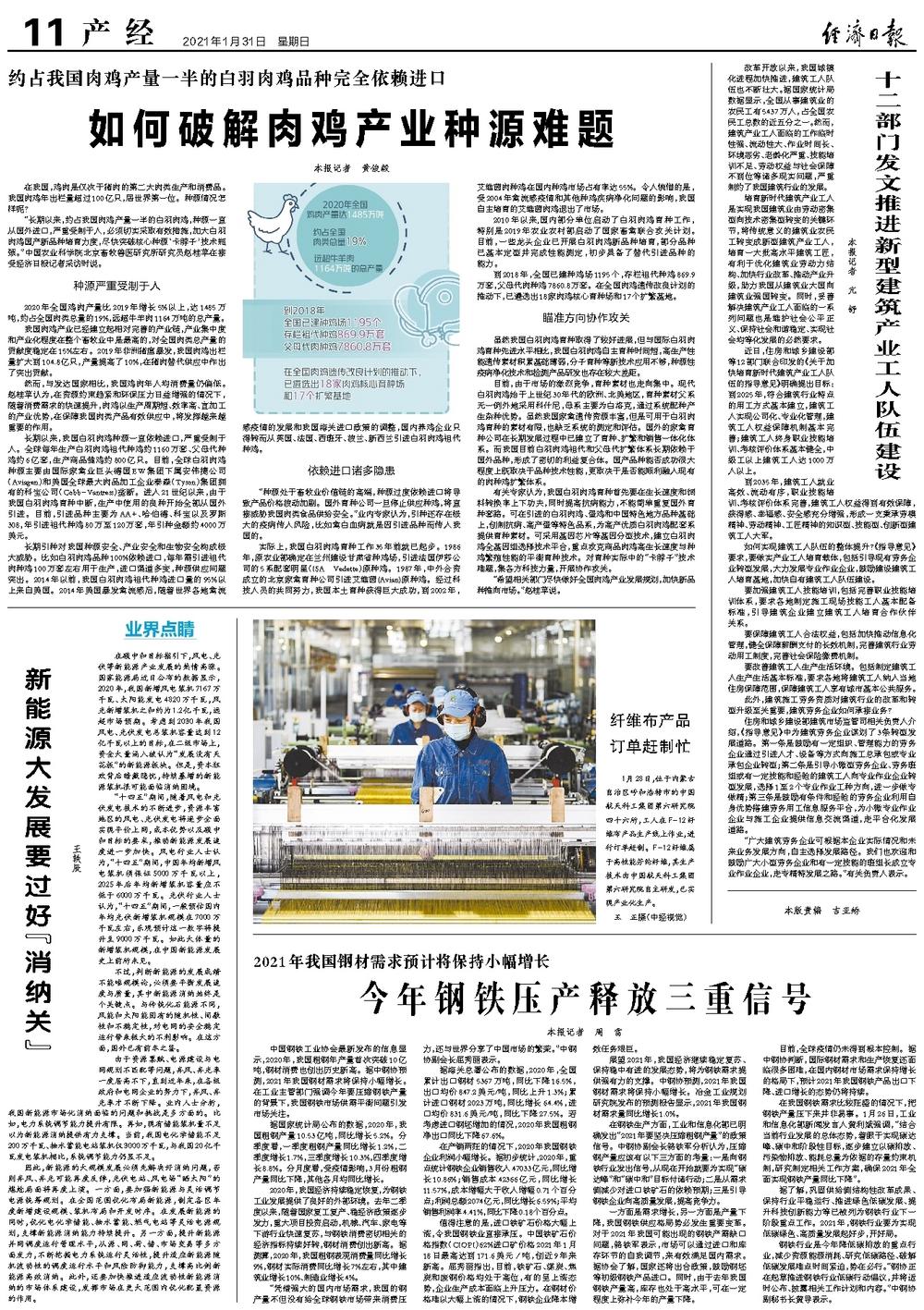 十二部门发文推进新型建筑产业工人队伍建设 本报记者 亢 舒 2021年01月31日