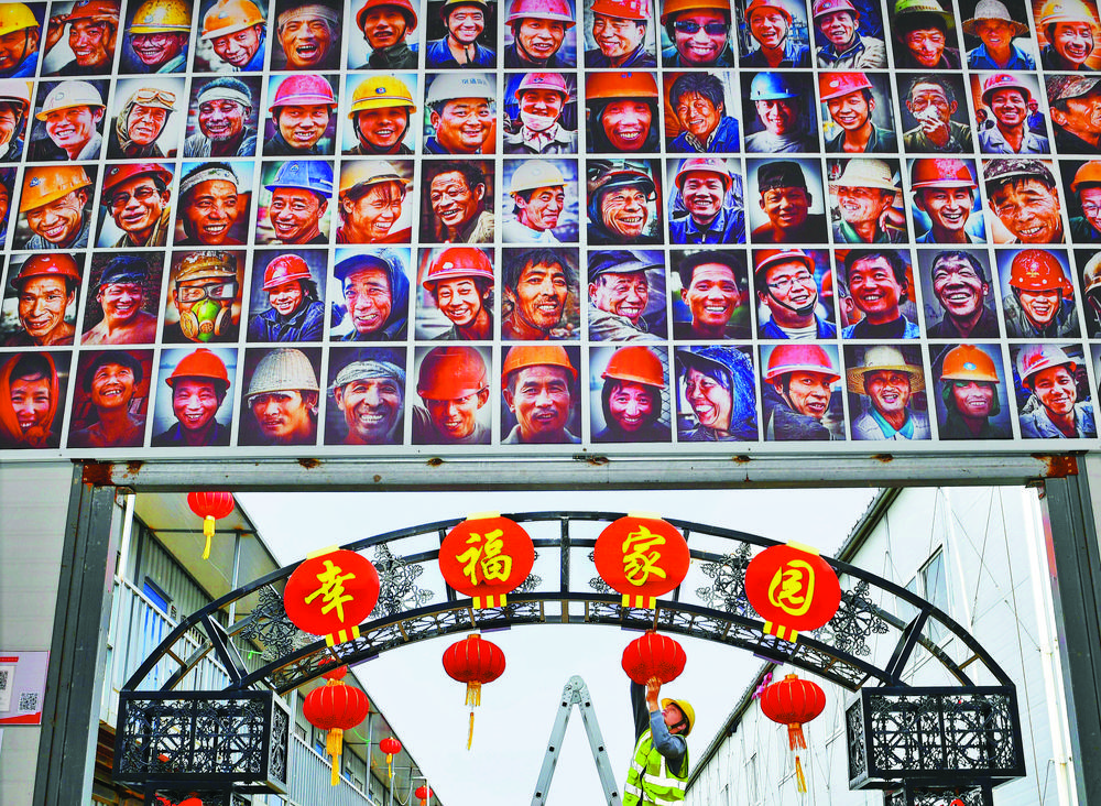 ▲2月2日,江苏省无锡市,中铁四局无锡地铁4号线具区路车辆段项目工地,员工在“笑脸墙”前挂灯笼,营造就地过年的温馨氛围。 张 飞摄