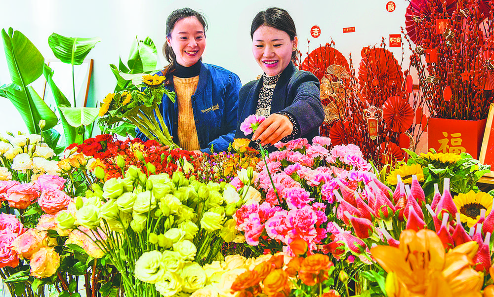 ▼2月4日,江西省樟树市市民在花店选购鲜花,装饰新居迎接新年。时下,绿植鲜花等已成为人们过节必不可少的新年货。 陈 晗摄