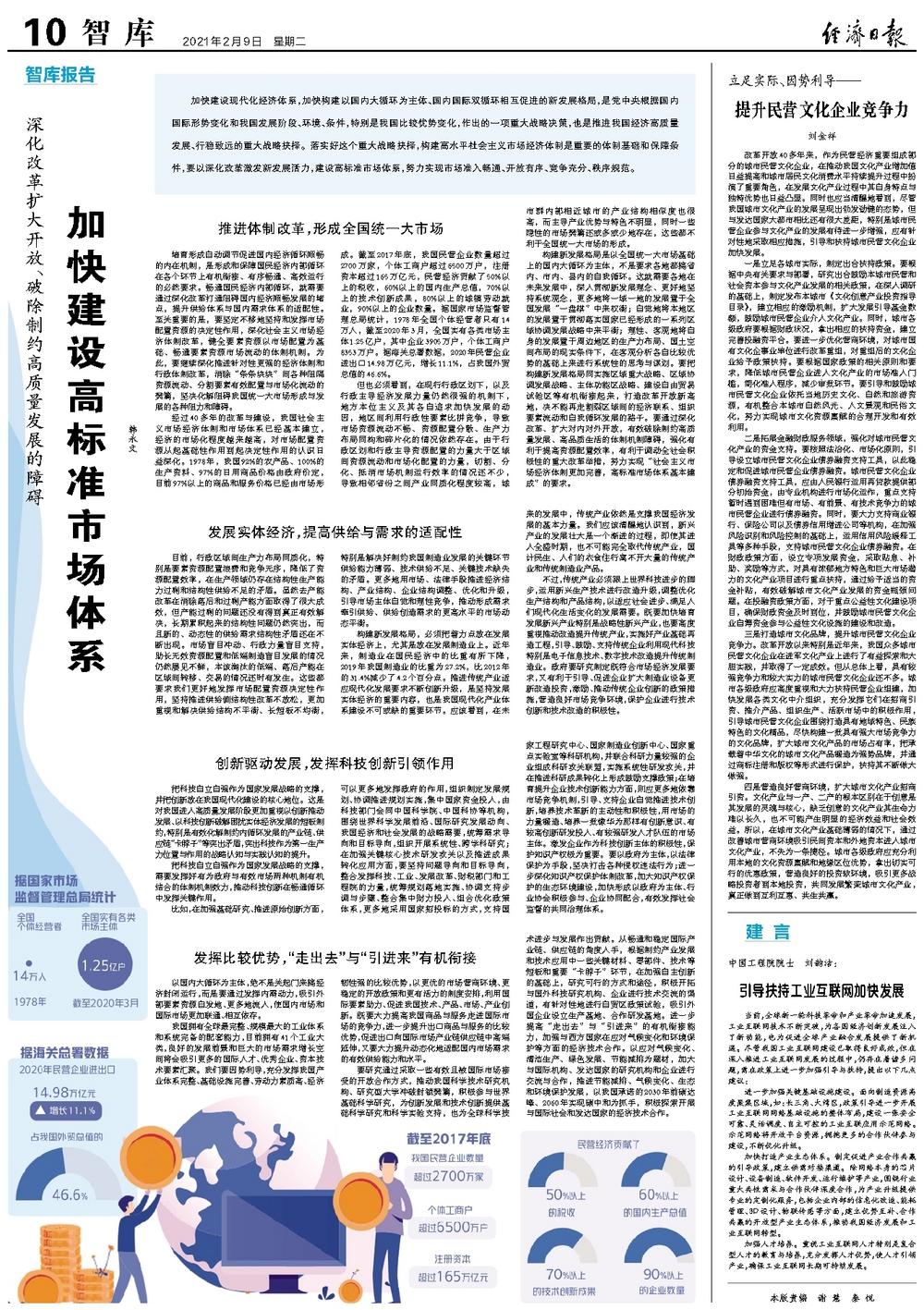 经过40多年的改革与建设,我国社会主义市场经济体制和市场体系已经基本建立,经济的市场化程度越来越高,对市场配置资源从起基础性作用到起决定性作用的认识日益深化。1978年,我国92%的农产品、100%的生产资料、97%的日用商品价格由政府价定,目前97%以上的商品和服务价格已经由市场形成。截至2017年底,我国民营企业数量超过2700万家,个体工商户超过6500万户,注册资本超过165万亿元,民营经济贡献了50%以上的税收,60%以上的国内生产总值,70%以上的技术创新成果,80%以上的城镇劳动就业,90%以上的企业数量。据国家市场监督管理总局统计,1978年全国个体经营者只有14万人,截至2020年3月,全国实有各类市场主体1.25亿户,其中企业3905万户,个体工商户8353万户。据海关总署数据,2020年民营企业进出口14.98万亿元,增长11.1%,占我国外贸总值的46.6%。