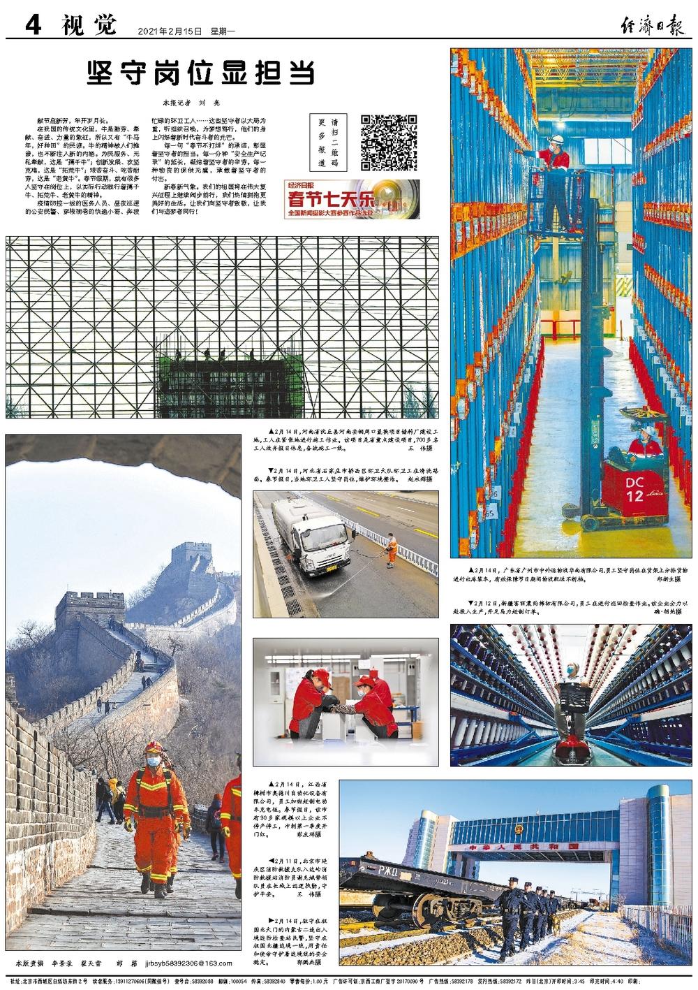 在我国的传统文化里,牛是勤劳、奉献、奋进、力量的象征,所以又有“牛马年,好种田”的民谚。牛的精神被人们推崇,也不断注入新的内涵。为民服务、无私奉献,这是“孺子牛”;创新发展、攻坚克难,这是“拓荒牛”;艰苦奋斗、吃苦耐劳,这是“老黄牛”。春节假期,就有很多人坚守在岗位上,以实际行动践行着孺子牛、拓荒牛、老黄牛的精神。 疫情防控一线的医务人员、昼夜巡逻的公安民警、穿梭街巷的快递小哥、奔波忙碌的环卫工人……这些坚守者以大局为重,听组织召唤,为梦想笃行,他们的身上闪烁着新时代奋斗者的光芒。 每一句“春节不打烊”的承诺,彰显着坚守者的担当。每一分钟“安全生产记录”的延长,凝结着坚守者的辛劳。每一种物资的保供无虞,承载着坚守者的付出。 新春新气象。我们的祖国将在伟大复兴征程上继续阔步前行,我们热情拥抱更美好的生活。让我们向坚守者致敬,让我们与追梦者同行!