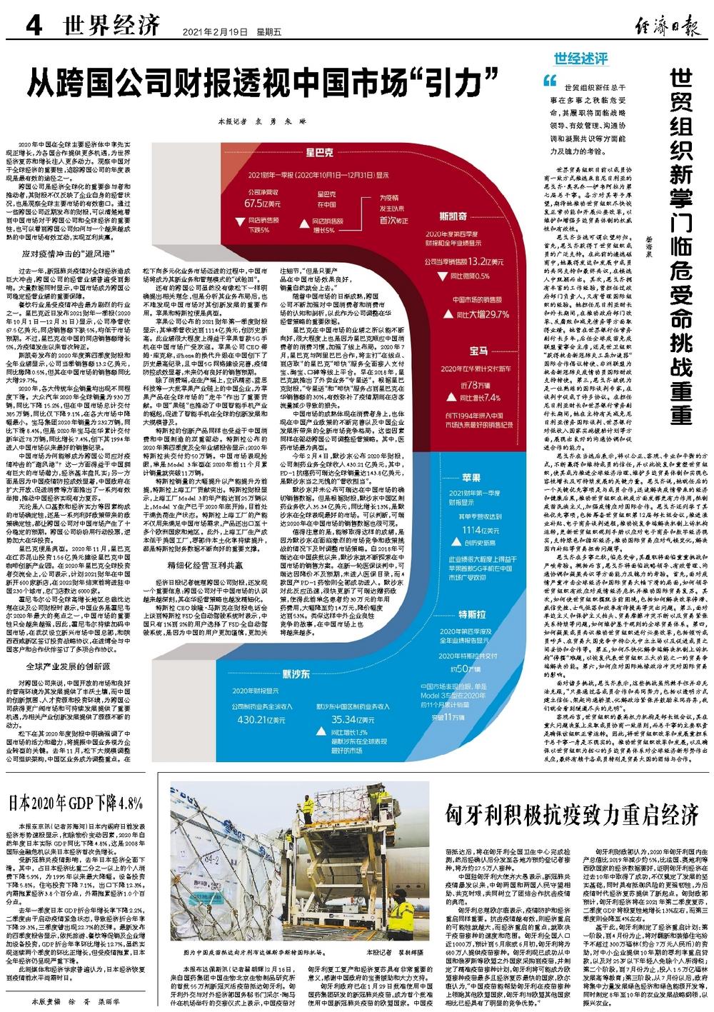 过去一年,新冠肺炎疫情对全球经济造成巨大冲击,跨国公司的经营业绩普遍受到影响。大量数据同时显示,中国市场成为跨国公司稳定经营业绩的重要保障。