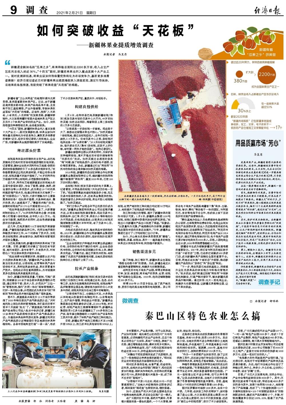 “十四五”期间,新疆把林果业列入重点发展十大产业之一。面对发展新机遇,林果业该如何将体量优势转化为市场竞争力,赢取更多消费者的青睐?近日,经济日报记者深入田间地头、企业厂房,对新疆林果业提质增效展开了实地调查。