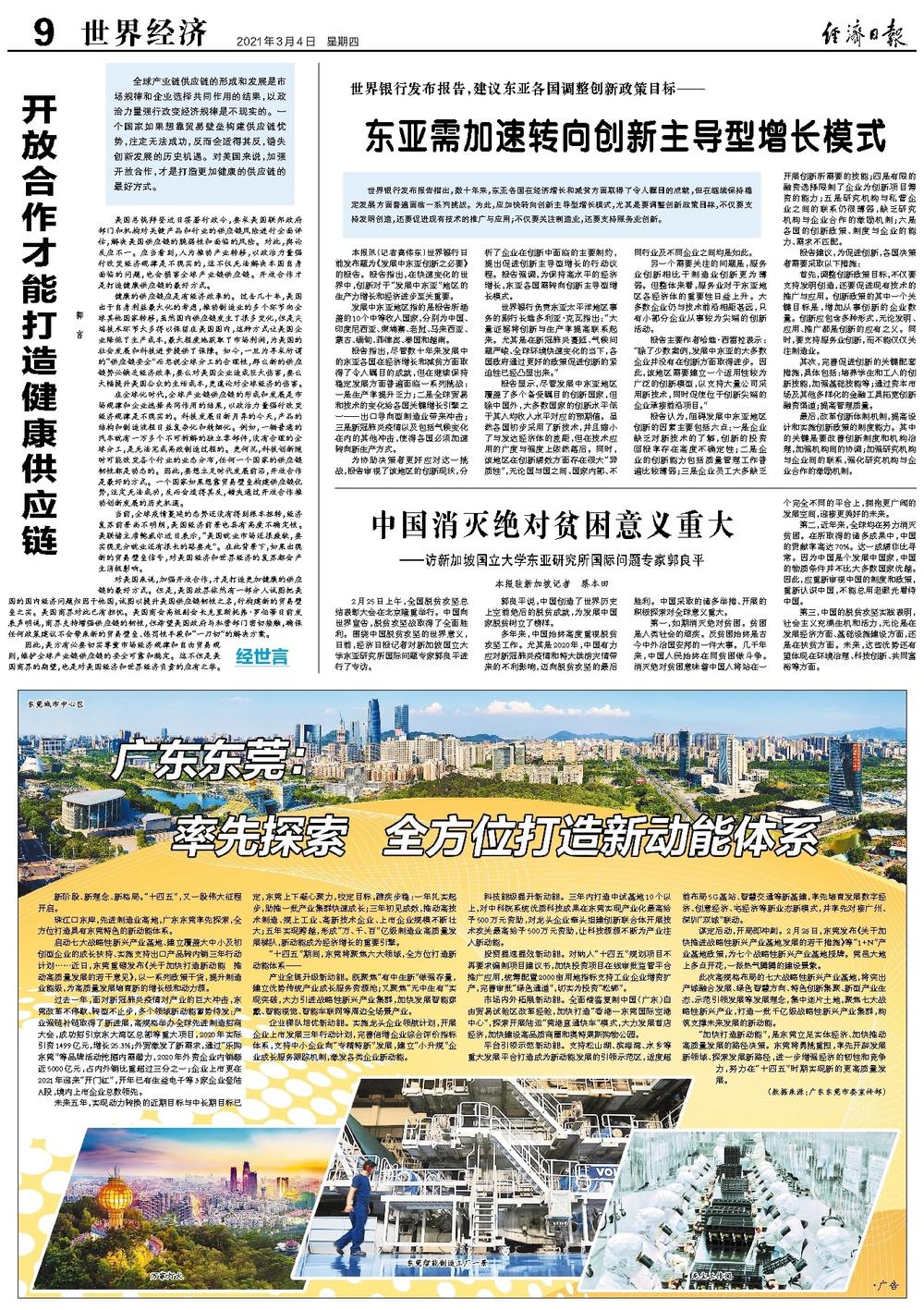 世界银行负责东亚太平洋地区事务的副行长维多利亚·克瓦指出:“大量证据将创新与生产率提高联系起来。尤其是在新冠肺炎蔓延、气候问题严峻、全球环境快速变化的当下,各国政府通过更好的政策促进创新的紧迫性已经凸显出来。”