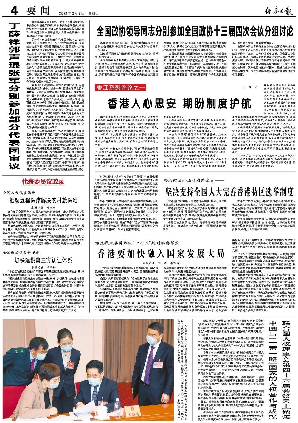 全国政协常委、粤港澳大湾区企业家联盟主席蔡冠深说:“政府工作报告把今年发展主要预期目标定为国内生产总值增长6%以上,这是非常了不起的,国家经济的快速发展对香港而言是难能可贵的机遇。”蔡冠深委员认为,京港两地在服务贸易领域一直保持紧密合作,在京津冀协同发展作为国家战略的背景下,香港有潜力为推动京津冀地区现代服务业发展和提升区域服务业综合竞争力带来新的发展空间。蔡冠深委员说,京津冀地区企业在“走出去”进行海外业务扩展过程中,必然需要使用商业法律和会计服务,香港在法律仲裁和会计服务领域拥有众多国际性专业人才,可为京津冀企业“走出去”提供支援。香港更可发挥作为亚太区国际法律及解决争议服务中心的资源优势,在京津冀企业“走出去”遇到合作争议问题时提供法律和仲裁支援。