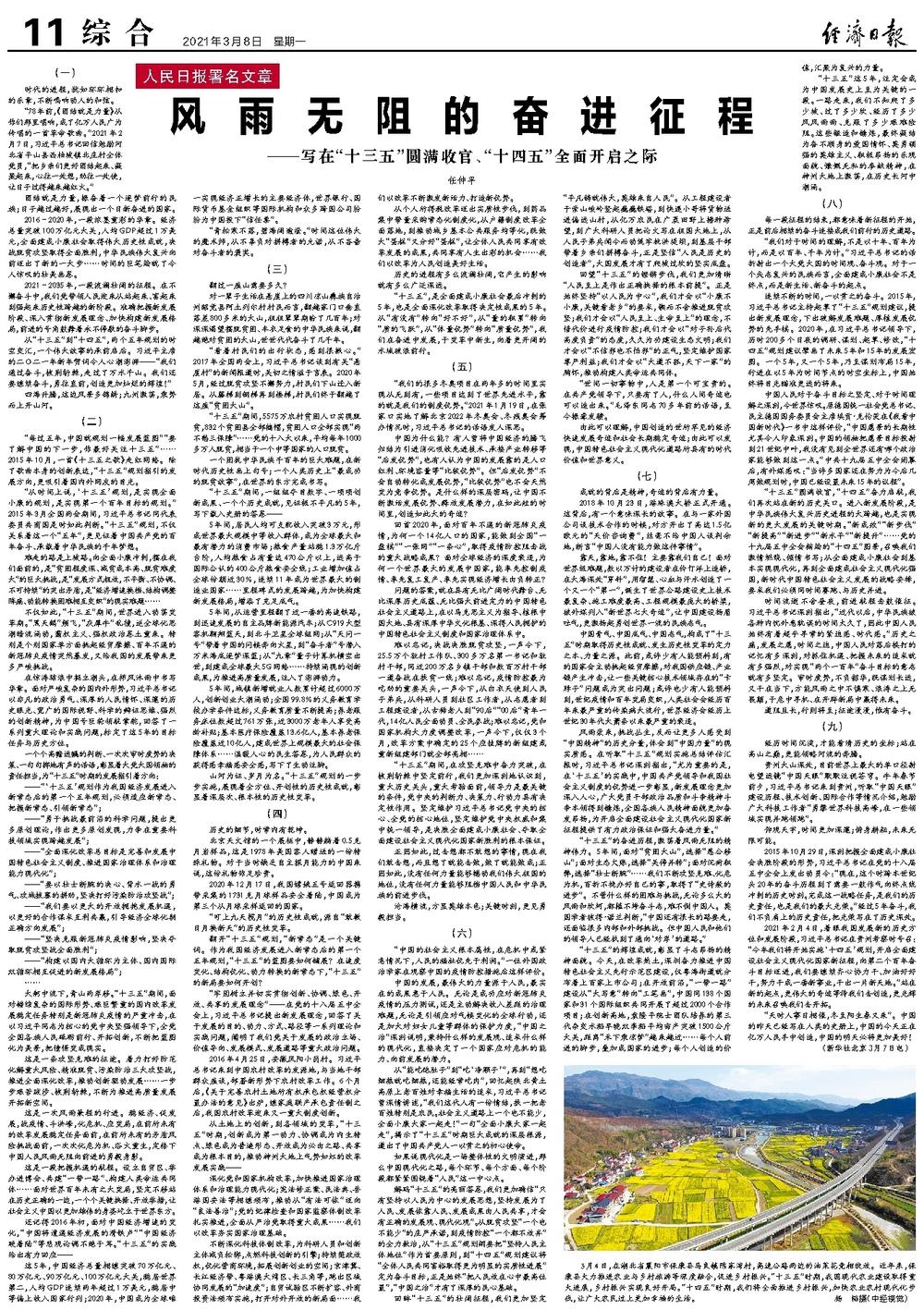 “十三五”的奋进历程,激荡着风雨无阻的精神伟力。5年间,面对“贫困大山”,选择“愚公移山”;面对生态欠账,选择“关停并转”;面对沉疴积弊,选择“壮士断腕”……我们不断攻坚克难、化危为机,百折不挠办好自己的事,取得了“史诗般的进步”。不管什么样的困难与挑战,无论多么大的风雨和坎坷,都摧不垮奋斗志,难不倒中国人。英国学者彼得·诺兰判断,“中国还有很长的路要走,还面临很多内部和外部挑战。但中国人民和他们的领导人已经找到了通向‘对岸’的道路。”