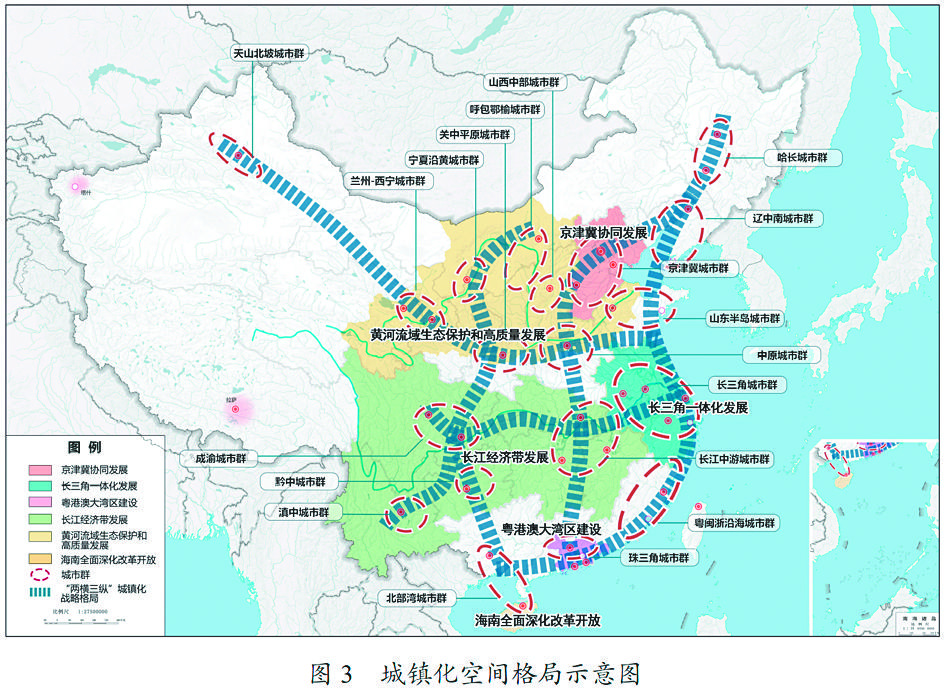以促进城市群发展为抓手,全面形成“两横三纵”城镇化战略格局。优化提升京津冀、长三角、珠三角、成渝、长江中游等城市群,发展壮大山东半岛、粤闽浙沿海、中原、关中平原、北部湾等城市群,培育发展哈长、辽中南、山西中部、黔中、滇中、呼包鄂榆、兰州-西宁、宁夏沿黄、天山北坡等城市群。建立健全城市群一体化协调发展机制和成本共担、利益共享机制,统筹推进基础设施协调布局、产业分工协作、公共服务共享、生态共建环境共治。优化城市群内部空间结构,构筑生态和安全屏障,形成多中心、多层级、多节点的网络型城市群。
