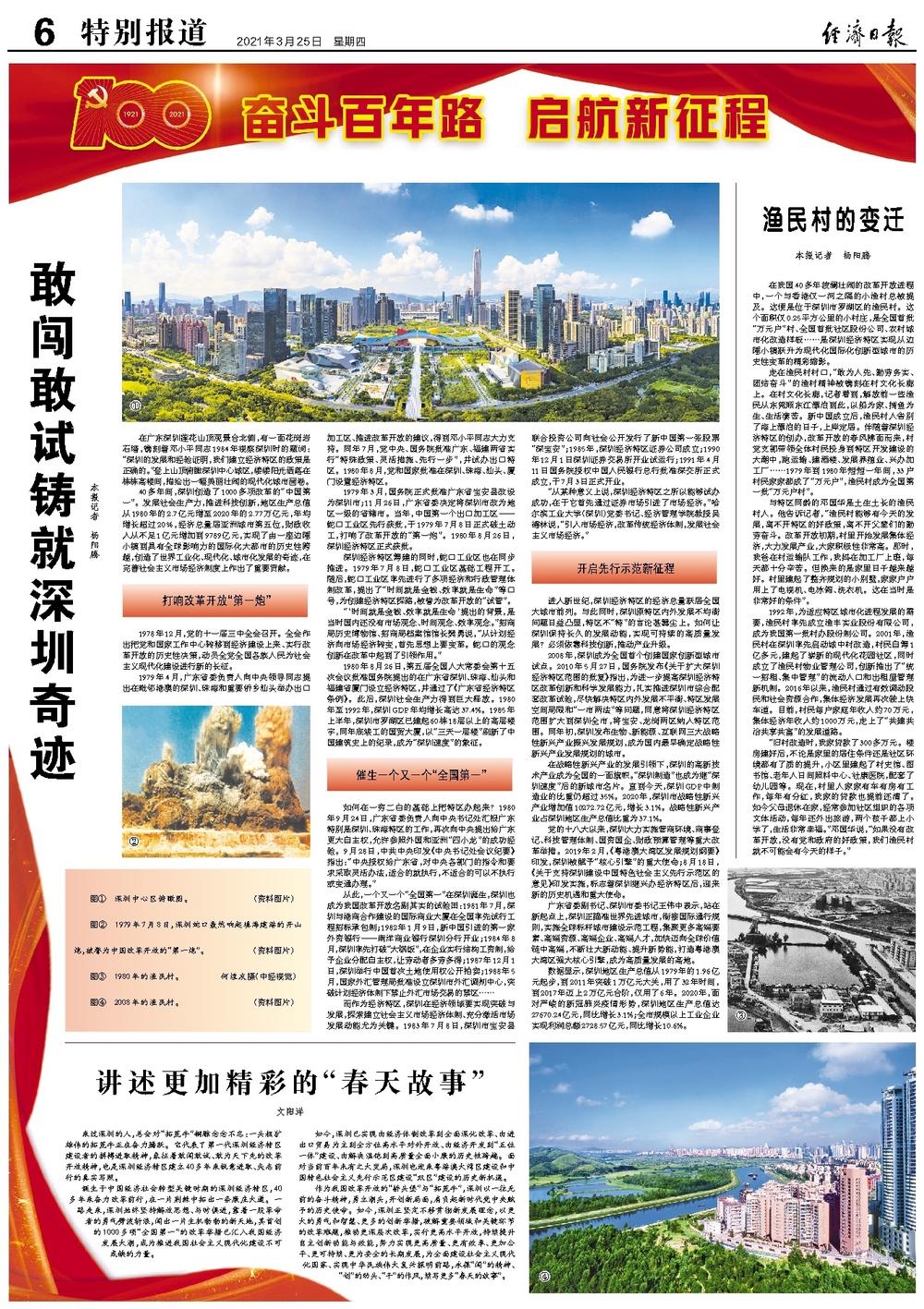 40多年间,深圳创造了1000多项改革的“中国第一”。发展社会生产力,推进科技创新,地区生产总值从1980年的2.7亿元增至2020年的2.77万亿元,年均增长超过20%,经济总量居亚洲城市第五位,财政收入从不足1亿元增加到9789亿元,实现了由一座边陲小镇到具有全球影响力的国际化大都市的历史性跨越,创造了世界工业化、现代化、城市化发展的奇迹,在完善社会主义市场经济制度上作出了重要贡献。