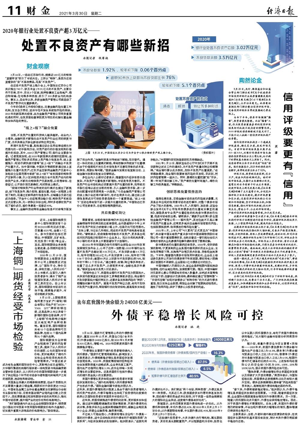 去年底我国外债余额为24008亿美元—— 外债平稳增长风险可控 2021年03月30日  本报记者 姚 进