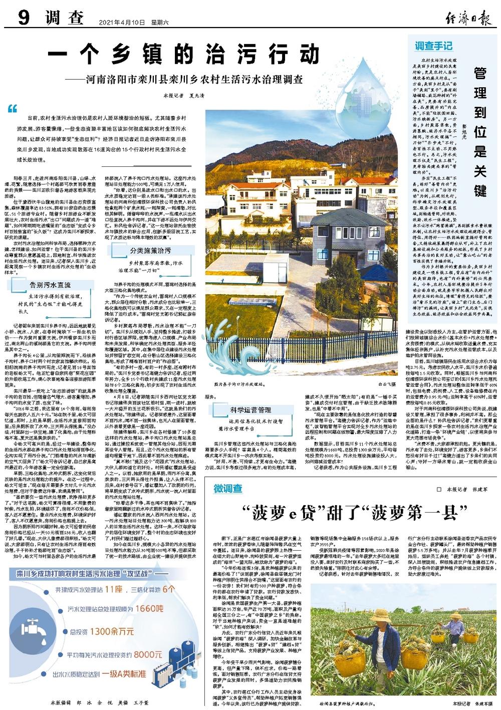 对于河南科创清源环保科技公司来说,既建设又管理,承担了很多事务,利润并不高。那企业图的是什么?孙风俭告诉记者,“我们更看重的是在栾川乡探索一条农村生活污水治理产业化道路,打造一条‘环境产业链’,以便将来参与更大范围市场竞争”。